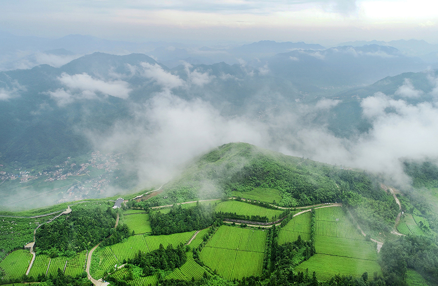 6月30日,安化縣馬路鎮(zhèn)云臺山頂,標準化的生態(tài)茶園與遠山、云海、綠樹相互映襯。目前,茶產業(yè)已成為該縣脫貧攻堅的重要支柱產業(yè)。