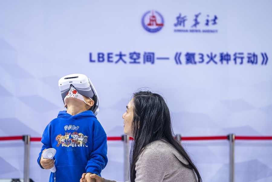 11月13日,湖南國際會展中心(芒果館),觀眾在體驗新華社LBE大空間。