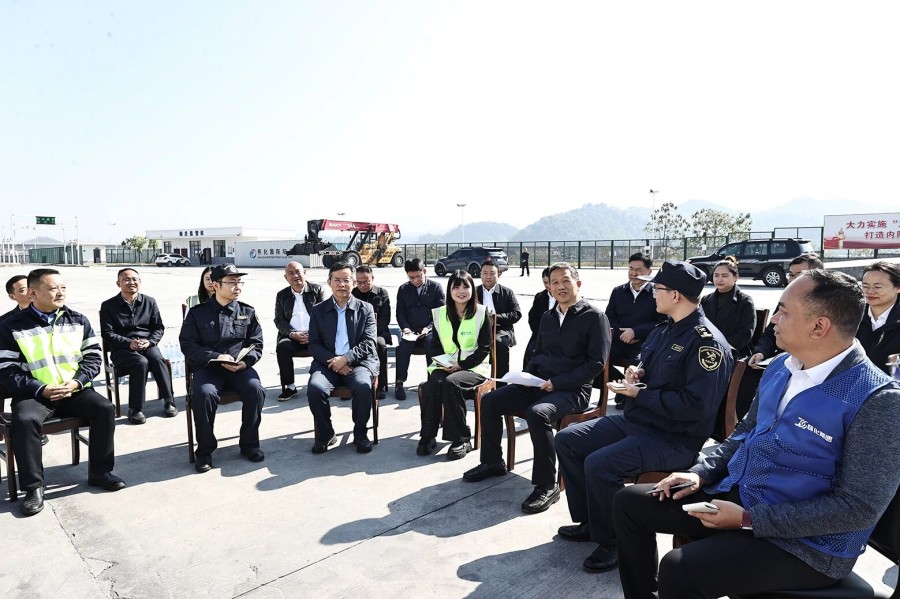 隨后,毛偉明一行來到懷化國際陸港公司,了解企業最新發展情況,并與大家座談。他說,自2021年9月啟動建設以來,懷化國際陸港步入發展快車道,預計今年提前一年完成班列開行達1000列以上、貨物吞吐量達1000萬噸以上、總產值達1000億元以上的“三個一千”目標。“十五五”期間,懷化市和有關部門要按照“量質并舉、以質取勝,提升功能、提高效能,做高平臺、做強產業,政府引導、市場主導”的要求,用好用足政策優勢、區位優勢、開放優勢,持續在加強貨物集結、優化貨運結構、降低物流成本上下功夫,著力打造一批特色鮮明的支柱企業、主導產業,加快以港興產、以產促港、港產城一體化融合發展,奮力建設一流國際陸港。
