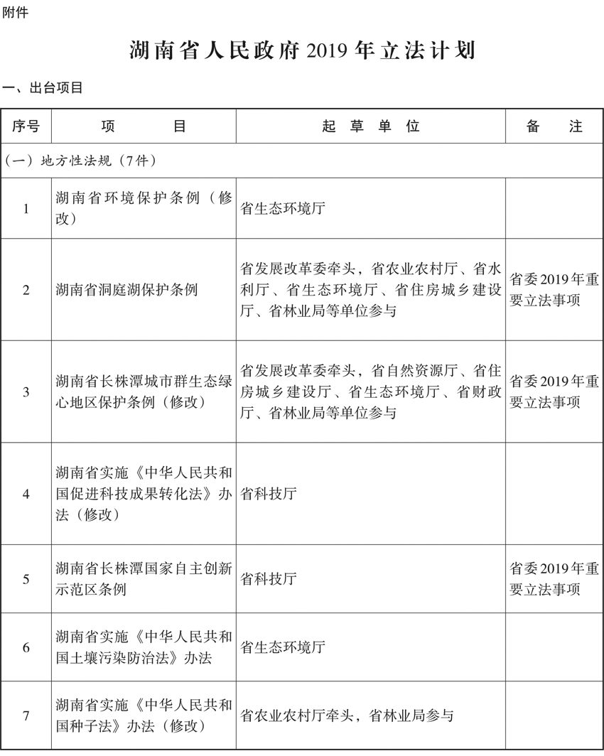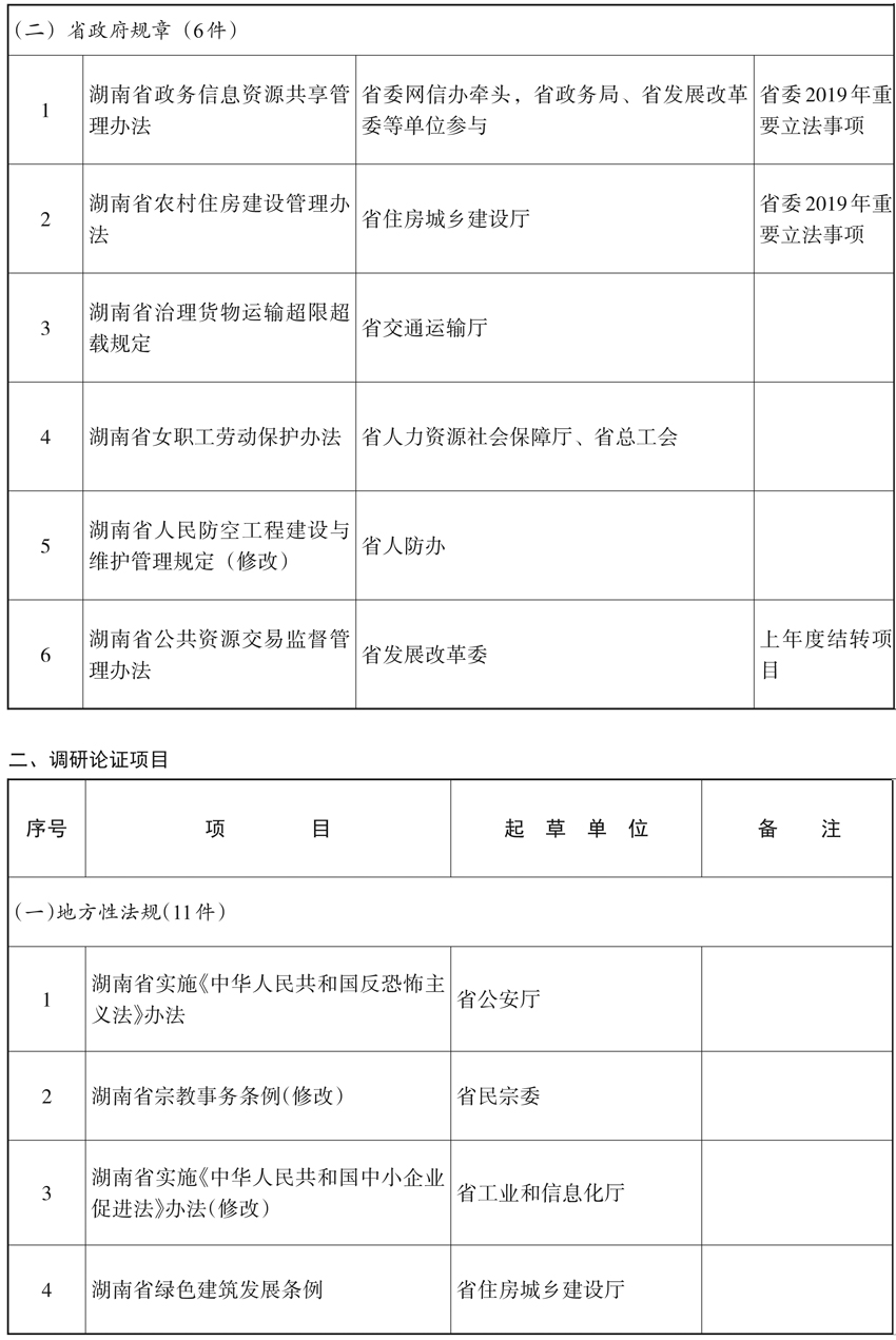 《湖南省人民政府2019年立法計劃》已經省委、省人民政府同意,現印發給你們,請遵照執行。為保證省人民政府2019年立法計劃的順利實施,現就有關事項通知如下: