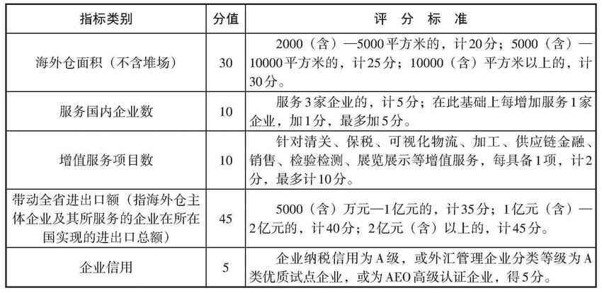 2.支持標(biāo)準(zhǔn):綜合評分60—74分的,在給予自建公共海外倉實際投資額10%且不超過500萬元的獎補(bǔ)、租賃海外倉場地租賃成本30%且不超過100萬元的獎補(bǔ)基礎(chǔ)上,給予兩年共40萬元運營費獎補(bǔ);綜合評分75—89分的,在給予自建公共海外倉實際投資額20%且不超過500萬元的獎補(bǔ)、租賃海外倉場地租賃成本40%且不超過100萬元的獎補(bǔ)基礎(chǔ)上,給予兩年共60萬元運營費獎補(bǔ);綜合評分90分及以上的,在給予自建公共海外倉實際投資額30%且不超過500萬元的獎補(bǔ)、租賃海外倉場地租賃成本50%且不超過100萬元的獎補(bǔ)基礎(chǔ)上,給予兩年共80萬元運營費獎補(bǔ)。
