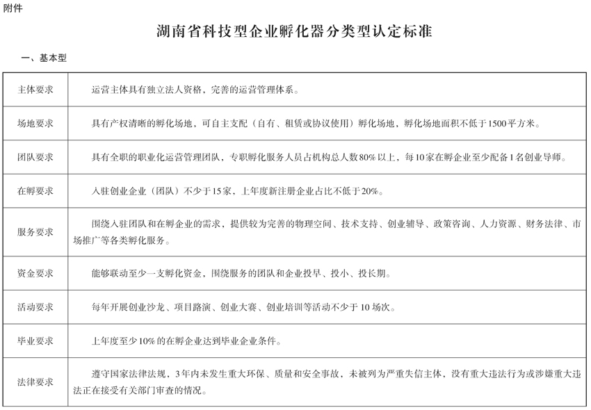 第七條 本辦法認定的孵化器包括基本型、標準型、標桿型三種類型。