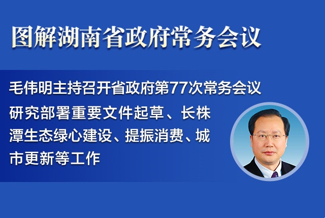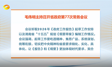 12月1日下午,省長毛偉明主持召開省政府第77次常務(wù)會議,傳達(dá)學(xué)習(xí)習(xí)近平總書記近期重要講話和指示批示精神,研究部署依法治省、2026年《政府工作報告》和省“十五五”規(guī)劃《綱要草案》等重要文件起草、推進(jìn)鄉(xiāng)村全面振興、長株潭生態(tài)綠心“多規(guī)合一”、提振消費(fèi)、城市更...[詳細(xì)內(nèi)容]