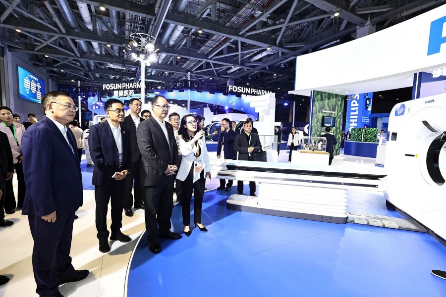 在醫(yī)療器械及醫(yī)藥保健展區(qū),毛偉明一行先后參觀了飛利浦、諾和諾德、諾華、拜耳等企業(yè)展臺,了解新技術、新產(chǎn)品、新服務,現(xiàn)場推介湖南投資機遇。他說,生物醫(yī)藥與醫(yī)療器械產(chǎn)業(yè)是湖南13條重點推進產(chǎn)業(yè)鏈之一。誠邀大家來湘共促技術變革、共拓產(chǎn)業(yè)空間,與湖南高質量發(fā)展同頻共振、在未來賽道攜手奔跑。