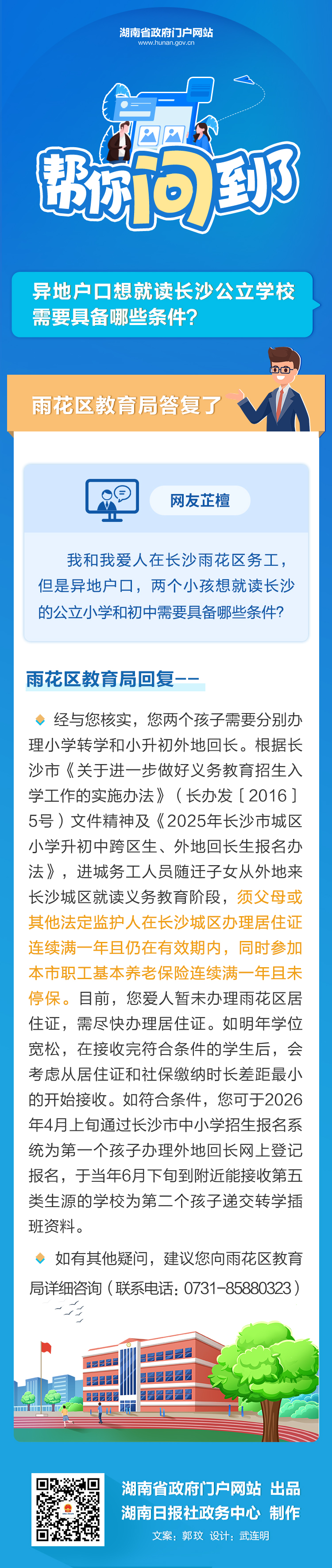 異地戶口想就讀長沙公立學校需要具備哪些條件?幫你問到了!