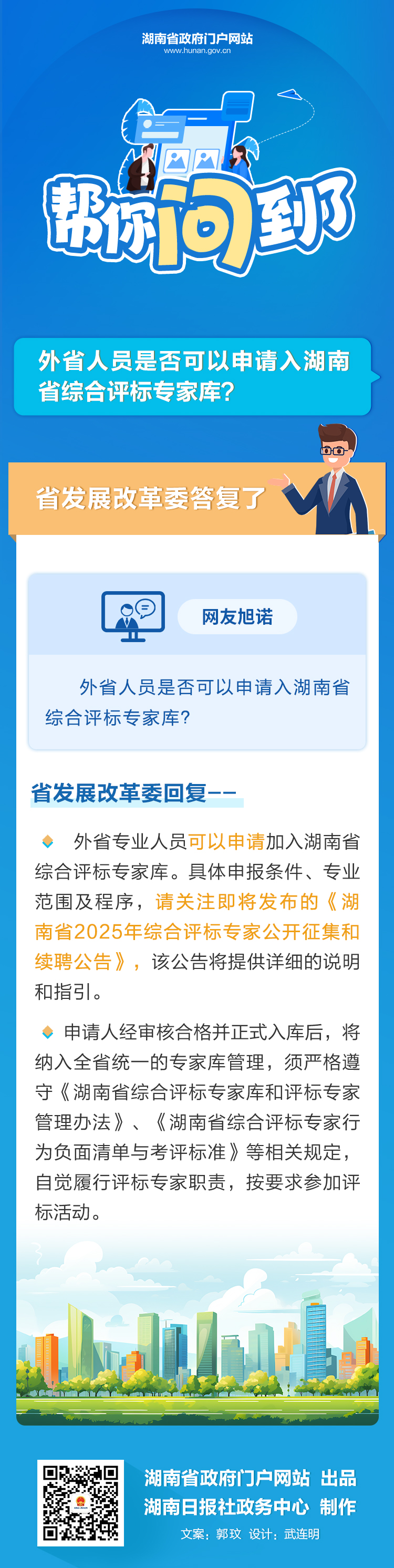 省外人員是否可以申請入湖南省綜合評標專家庫?幫你問到了!