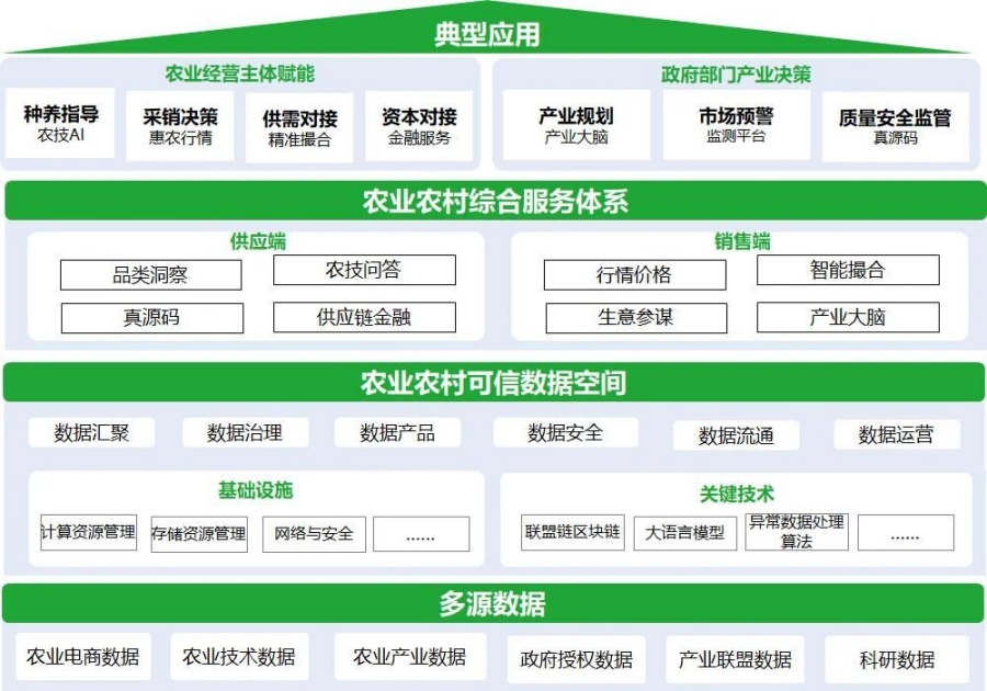 三是建設“微觀-中觀-宏觀”多層級賦能體系。微觀層驅動農業電商數據優化生產流程與精準營銷,提升流通效率;中觀層融合多源數據指導種養決策,優化資源配置;宏觀層創新產業聯盟模式,整合資源,打通普惠金融與數據價值通道,實現從企業提效、產業協同到生態共建閉環。