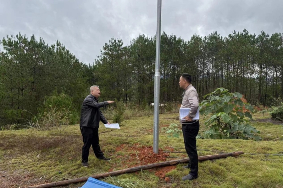 ▲宜章縣氣象局工作人員現場指導避雷針的安裝現場