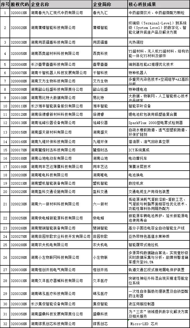 記者了解到,首批入板企業集中在戰略性新興產業,涉及新材料、生物醫藥、新一代信息技術、新能源與節能環保等領域,產學研緊密結合特征顯著,核心技術或來源于自主研發,或與國防科技大學、中南大學、哈爾濱工業大學、湖南大學、湖南中醫藥大學、北京大學長沙計算與數字經濟研究院等省內外知名高校或科研院所深度合作,其中12家入板企業的核心技術脫胎于省內外知名高校院所。