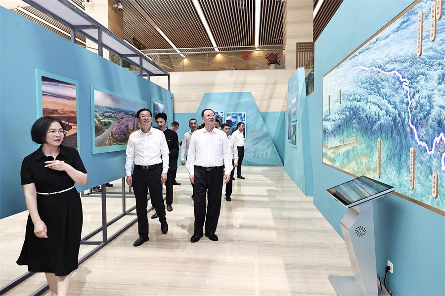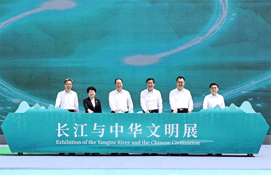 開幕式后,毛偉明、饒權共同為“不盡長江滾滾來——長江與中華文明展”主題展覽揭幕,并參觀了長沙博物館。